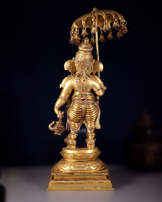 Brass Lord Ganesha Holding an Umbrella and Kamandalu Sculpture 25.5"