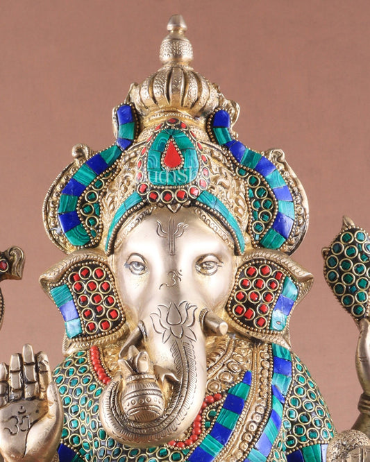 Brass Ganapati Idol Glossy – Handcrafted with Right-Side Trunk, 16" meenakari
