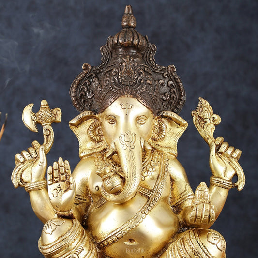 Brass Ganapati Idol – Handcrafted with Right-Side Trunk, 16" Height