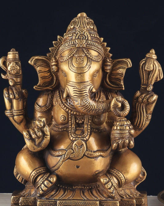 Brass Ganapati Unique Statue - Dull Gold Finish 11"
