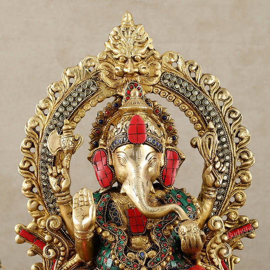 Brass Ganesha Statue with jewellers meenakari and Prabhavali 14"