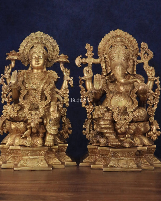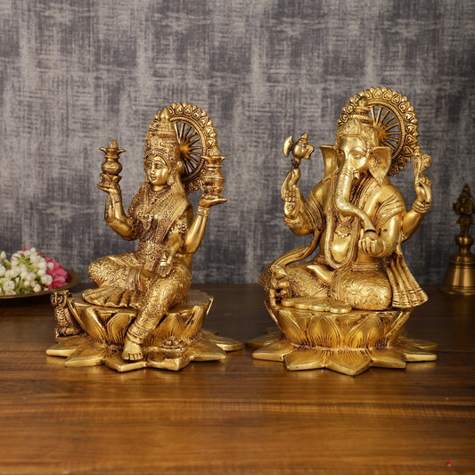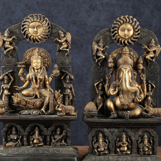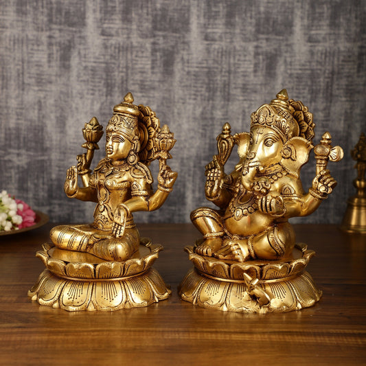 Buy pure brass Divine Ganesh Lakshmi idols and statues. Perfect murtis for your home temples and Pooja rooms. Bring home positivity.