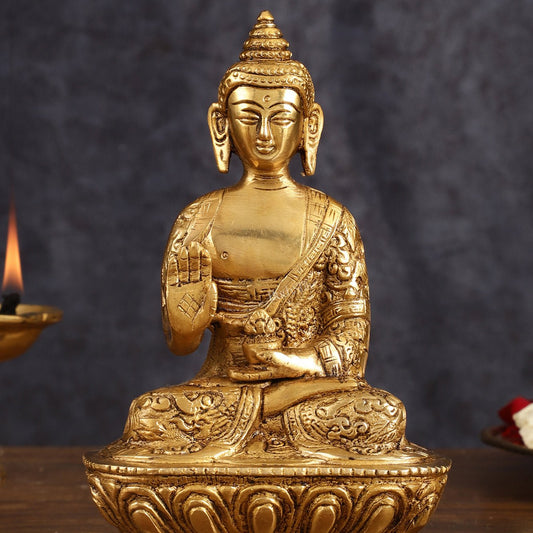 Pure Brass Blessing Buddha Statue | Handcrafted Fine Brass Sculpture 12 inch