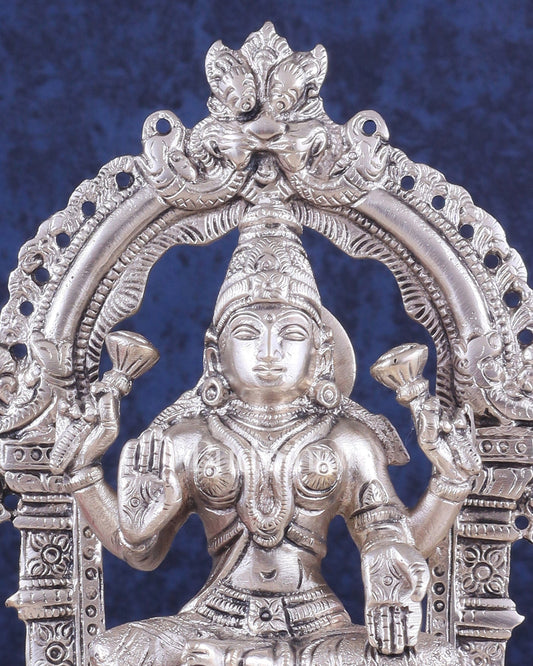 Pure Brass Goddess Lakshmi Seated on a Throne – Silver Plated Idol 8"