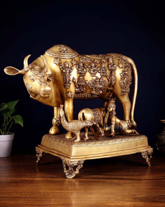 Buy Pure Brass Kamdhenu Cow with calf idols and statues. Bring home the holy wishfulling auspicious cow to your homes. Premium quality and great options to choose from.
