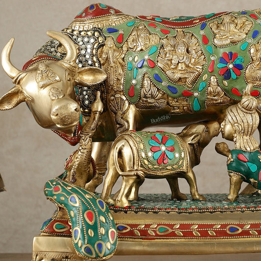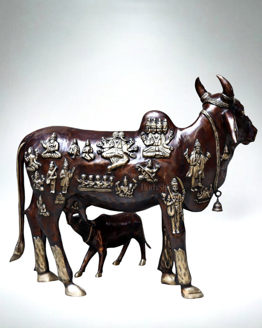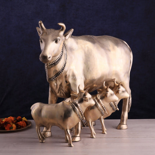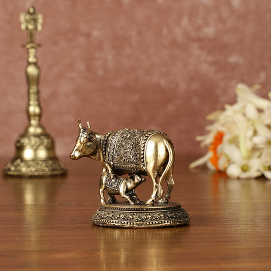 Buy Pure Brass Kamdhenu Cow with calf idols and statues. Bring home the holy wishfulling auspicious cow to your homes. Premium quality and great options to choose from.