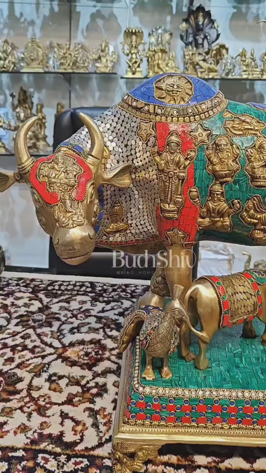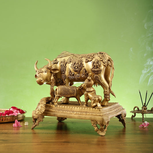 Buy Pure Brass Kamdhenu Cow with calf idols and statues. Bring home the holy wishfulling auspicious cow to your homes. Premium quality and great options to choose from.