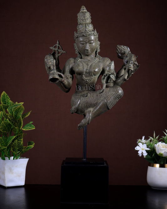 Parvati Bronze Decorative Sculpture on Wooden Base | Lost Wax Museum Style | 20.6 Inch Vintage Décor