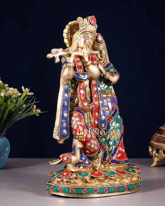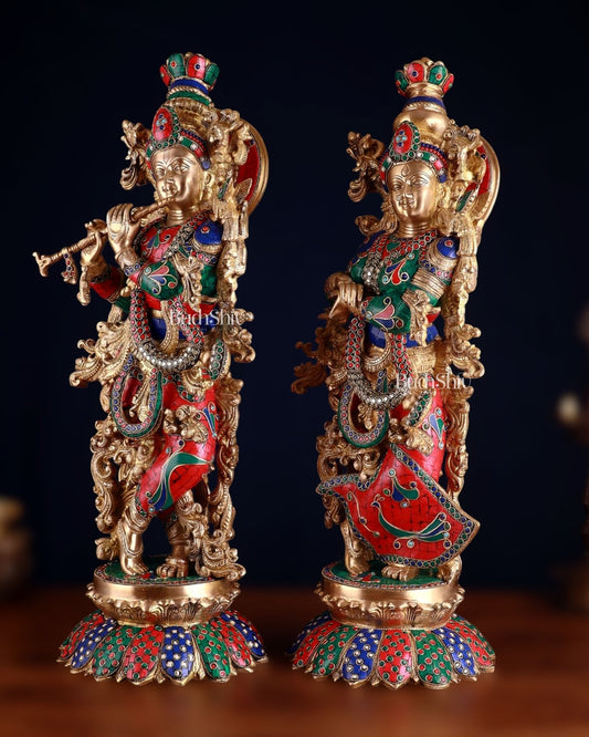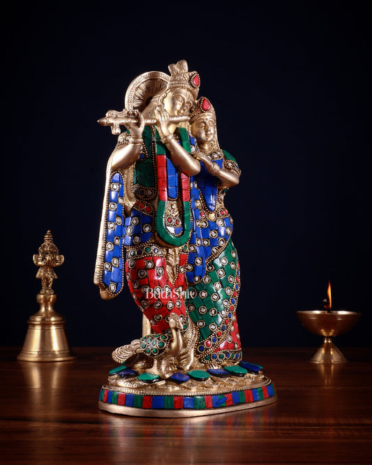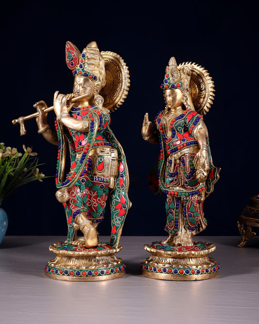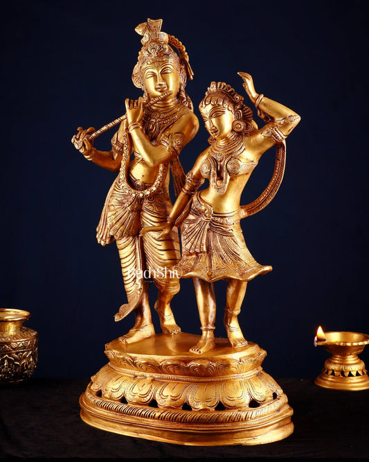 Pure Brass Handcrafted Radha Krishna idols and Statues. A huge variety to choose from. Invite blessings of the divine pair. Suitable for home and office temples. A great alternative for traditional decor.