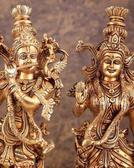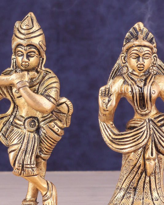 Pure Brass Handcrafted Radha Krishna idols and Statues. A huge variety to choose from. Invite blessings of the divine pair. Suitable for home and office temples. A great alternative for traditional decor.