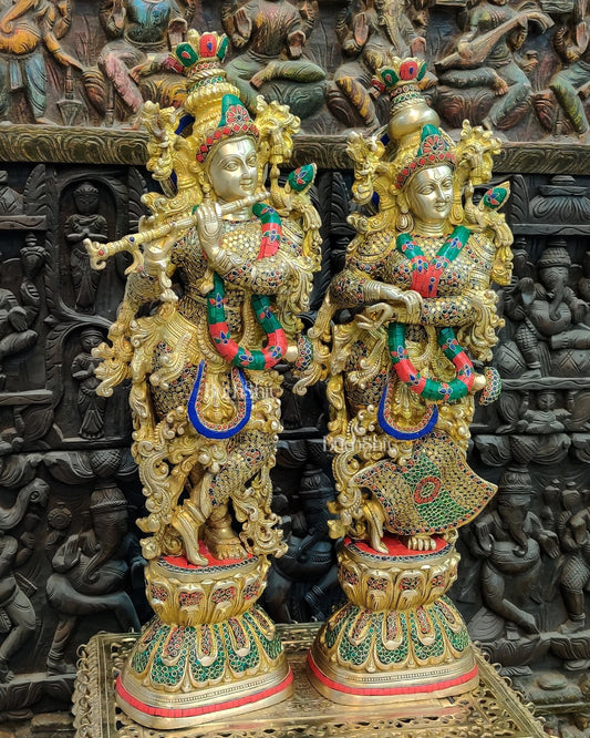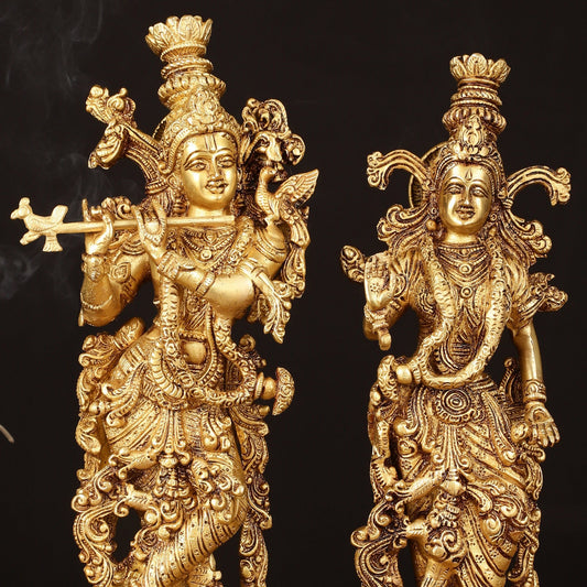 Pure Brass Handcrafted Radha Krishna idols and Statues. A huge variety to choose from. Invite blessings of the divine pair. Suitable for home and office temples. A great alternative for traditional decor.