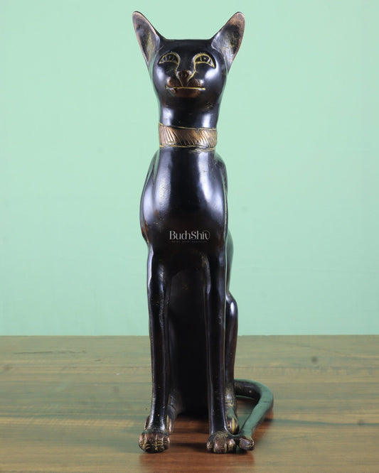 Brass Egyptian Black Cat – Elegant Showpiece 14"
