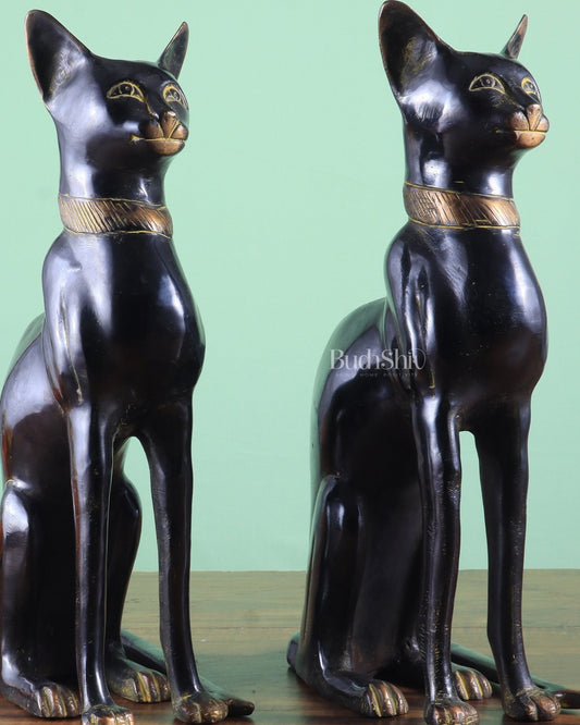 Brass Egyptian Black Cat Pair – Elegant Showpiece 14"