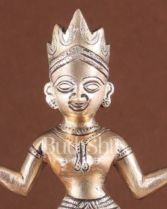Engraved Brass Kamdhenu Statue with Deities enhanced carvings