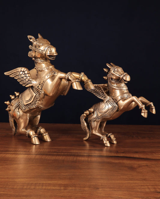 Majestic Brass Pegasus Flying Horse Statue Set – 11.5" & 9" | Father & Son Pair