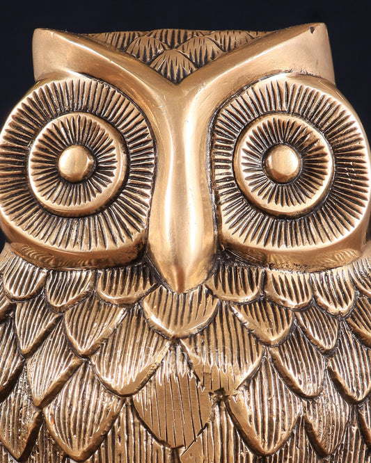 Pure Brass Finely Carved Large Owl Statue – 7" x 6" x 5" | Feng Shui & Vastu Approved