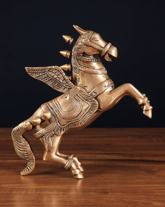 Pure Brass Pegasus Flying Horse Statue with Wings | Elegant Showpiece - 9 Inches matte tone