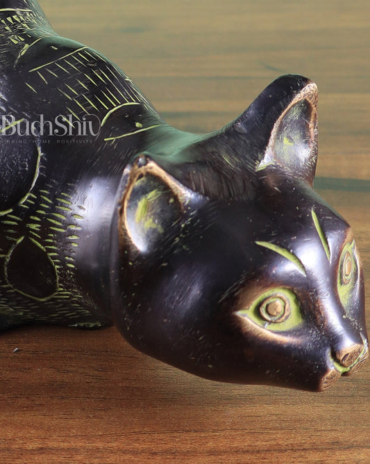 Pure Brass Vastu Black Cat Drinking Water Pose Showpiece