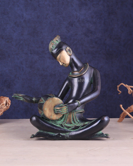 Brass Tribal Musician tanpura player large Showpiece - Vintage Design, 13 Inches