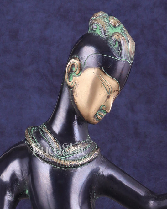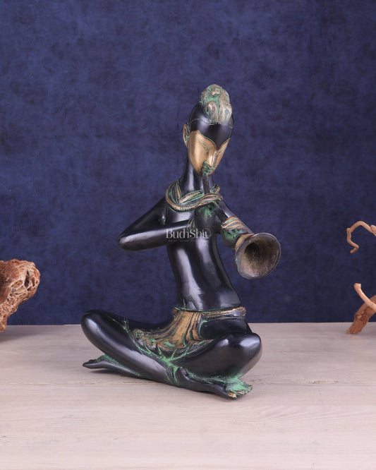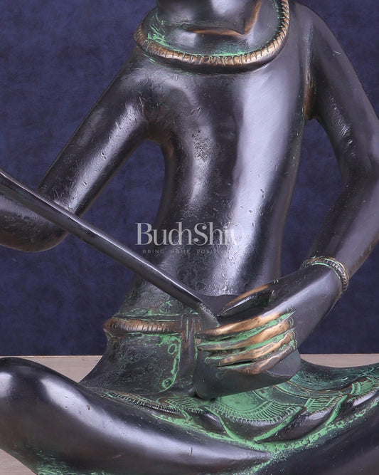 Brass Tribal Musician sitar player large Showpiece - Vintage Design, 13 Inches