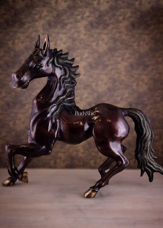 Large Brass Galloping Horse Showpiece Brown Tone Finish 30"