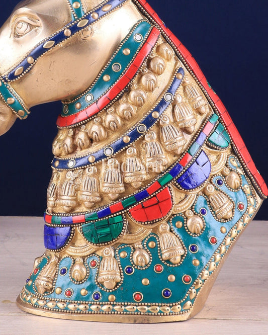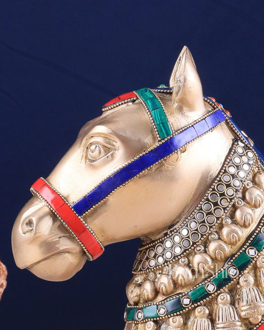 Pure Brass Horse Head Showpiece - stonework | 11 Inch