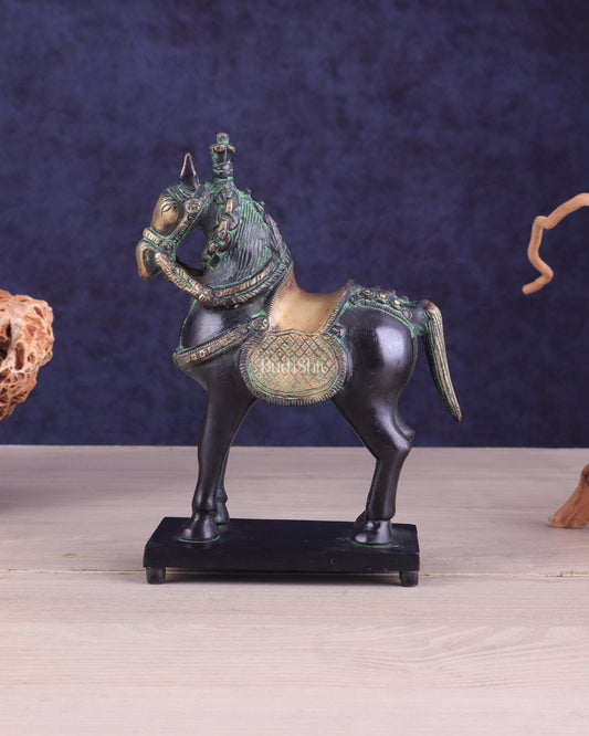 Vintage Brass Horse Standing Showpiece Statue – Elegant Design | 7.5 Inches