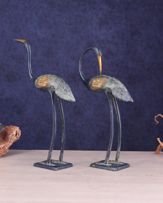 Brass Vintage Pair of Decorative Crane birds Vastu Compliant Statues