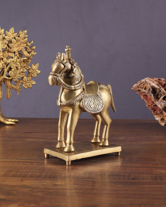 Brass Horse Standing Showpiece Statue – Elegant Design | 7.5 Inches