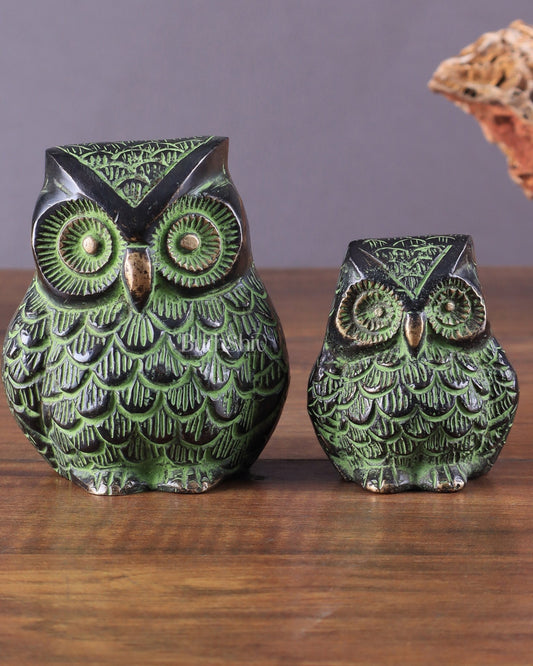 Brass Pair of Owl Showpieces – Vastu and Feng Shui Recommended Décor black green tone