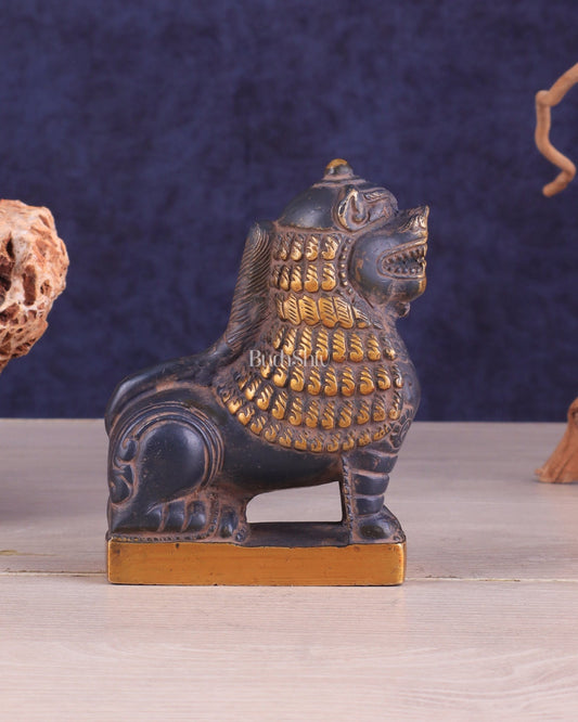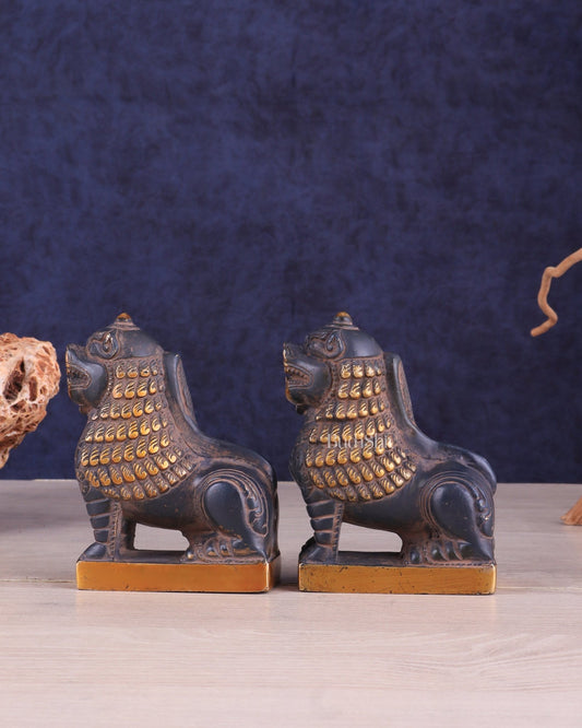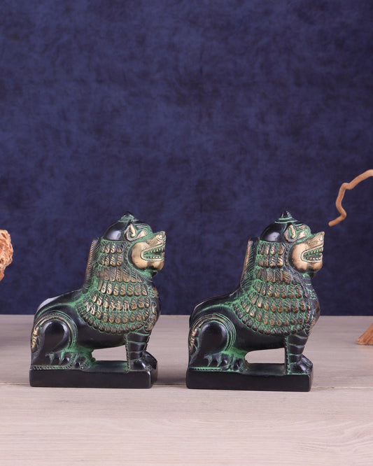 Brass Tibetan Snow Lion Pair – Antique Black & Green Finish