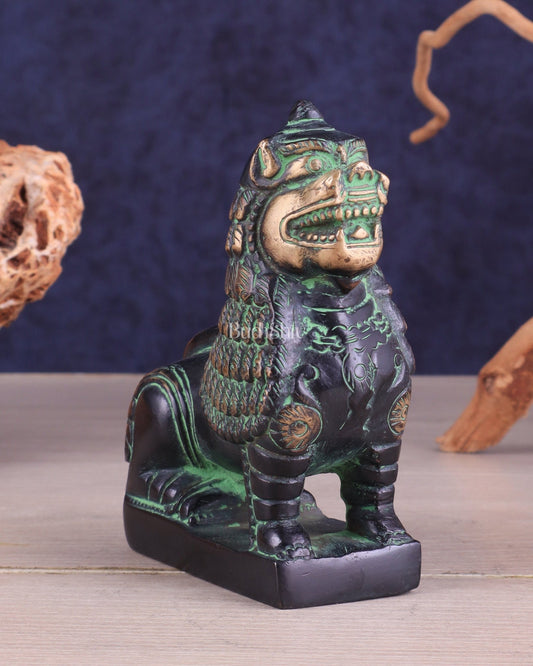 Brass Tibetan Snow Lion Showpiece – black and green tone