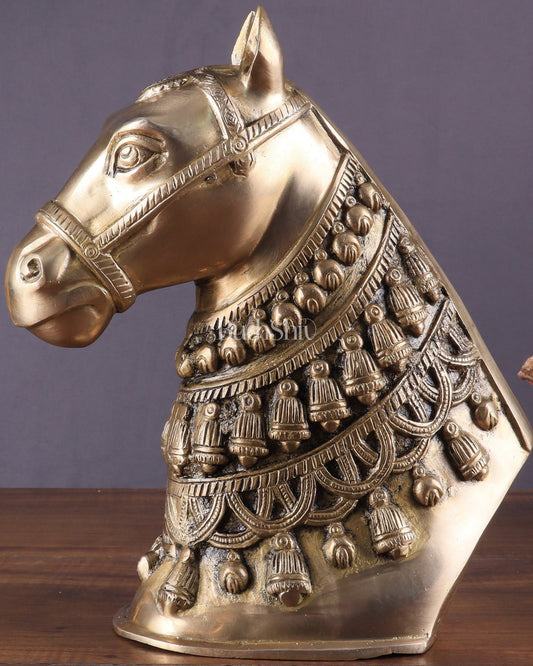 Pure Brass Horse Head Showpiece - Antique sand Tone | 11 Inch