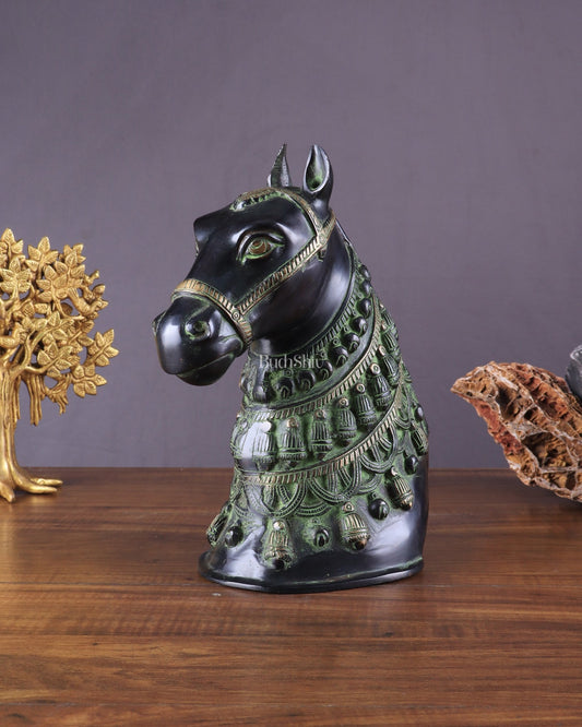 Pure Brass Horse Head Showpiece - Black and Green Antique Tone | 11 Inch