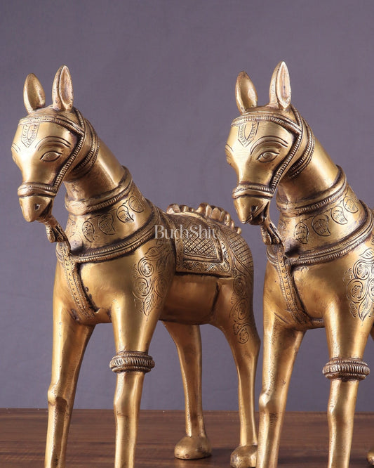 Pure Brass Unique Horse Statue Showpiece Pair | Elegant Home Decor 12.6"