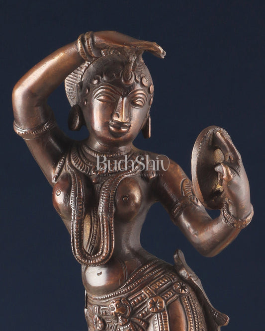Pure Brass Vintage Apsara Statue - Mirror & Sindoor Art Sculpture (13.5 Inch,