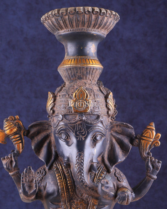 Vintage Brass Ganesha Candle Stand - Fine Detailing, Handcrafted Brass Décor