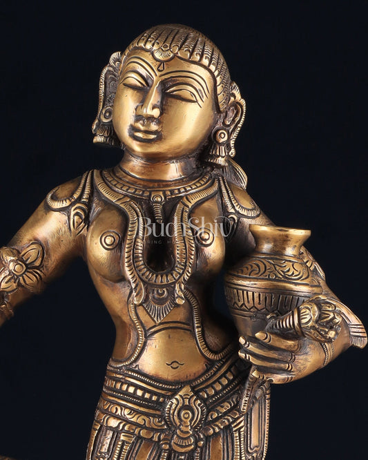Elegant Brass Pot Lady Sculpture - 16.5 Inches