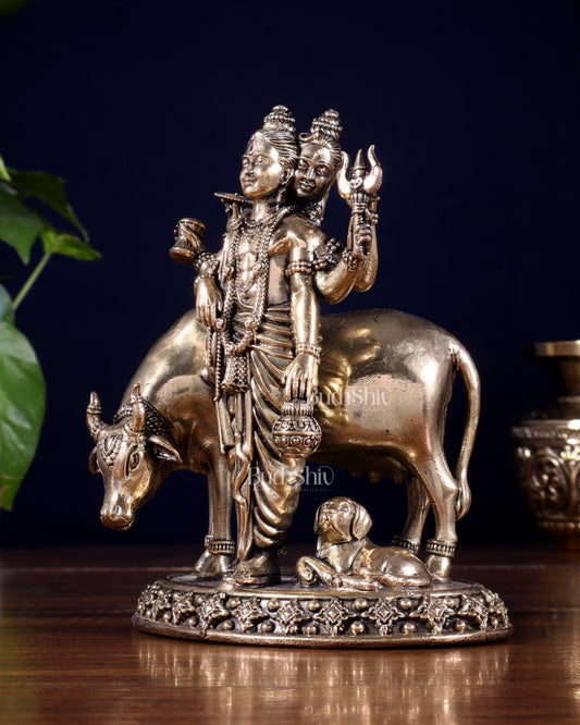 Pure Brass Superfine Dattatraya with cow and dog Idol - Lightweight Hollow Casting, 5.5"