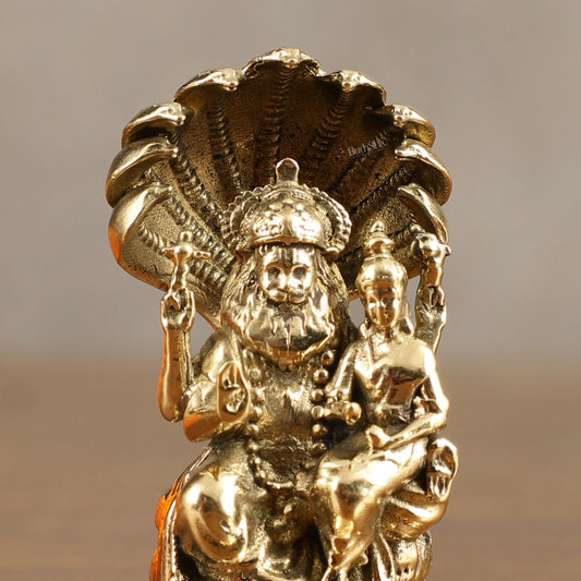 Pure Brass Miniature Narsimha Lakshmi Idol - 2 Inch