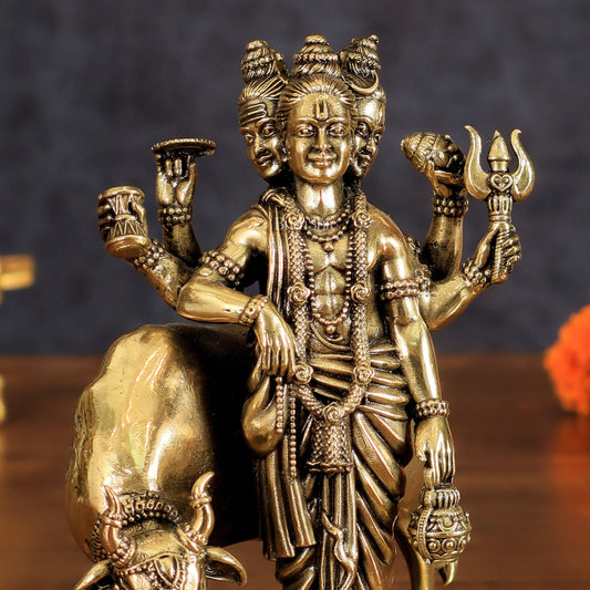 Pure Brass Superfine Dattatraya Idol - Lightweight Hollow Casting, 5.5"