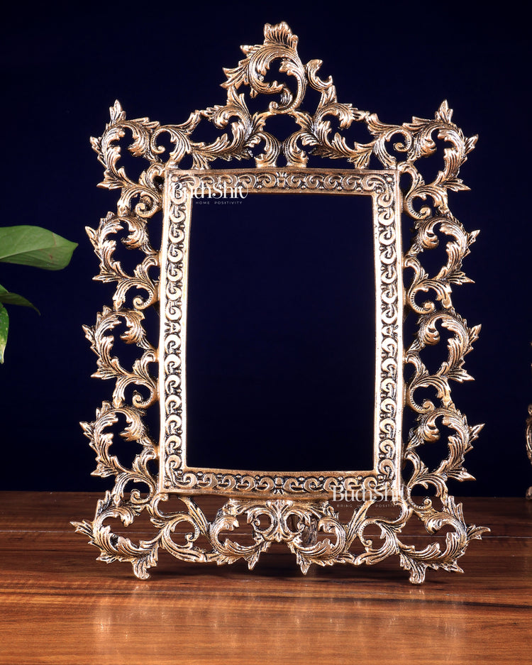 Perfect for showcasing family portraits, spiritual images, or treasured memories, the frame adds a regal touch to any space. The vintage brass patina not only enhances its aesthetic appeal but also makes it a collector’s delight.