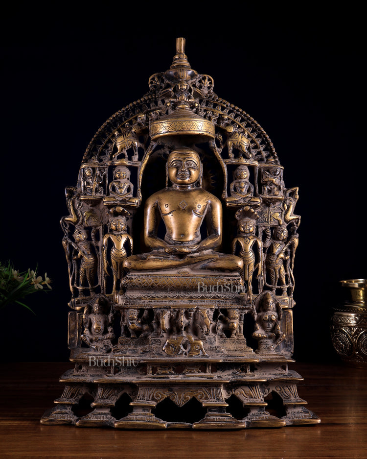 Antique Bronze Mahavir Ji with Jain Tirthankaras | Rustic Handcrafted Sculpture 16 inch