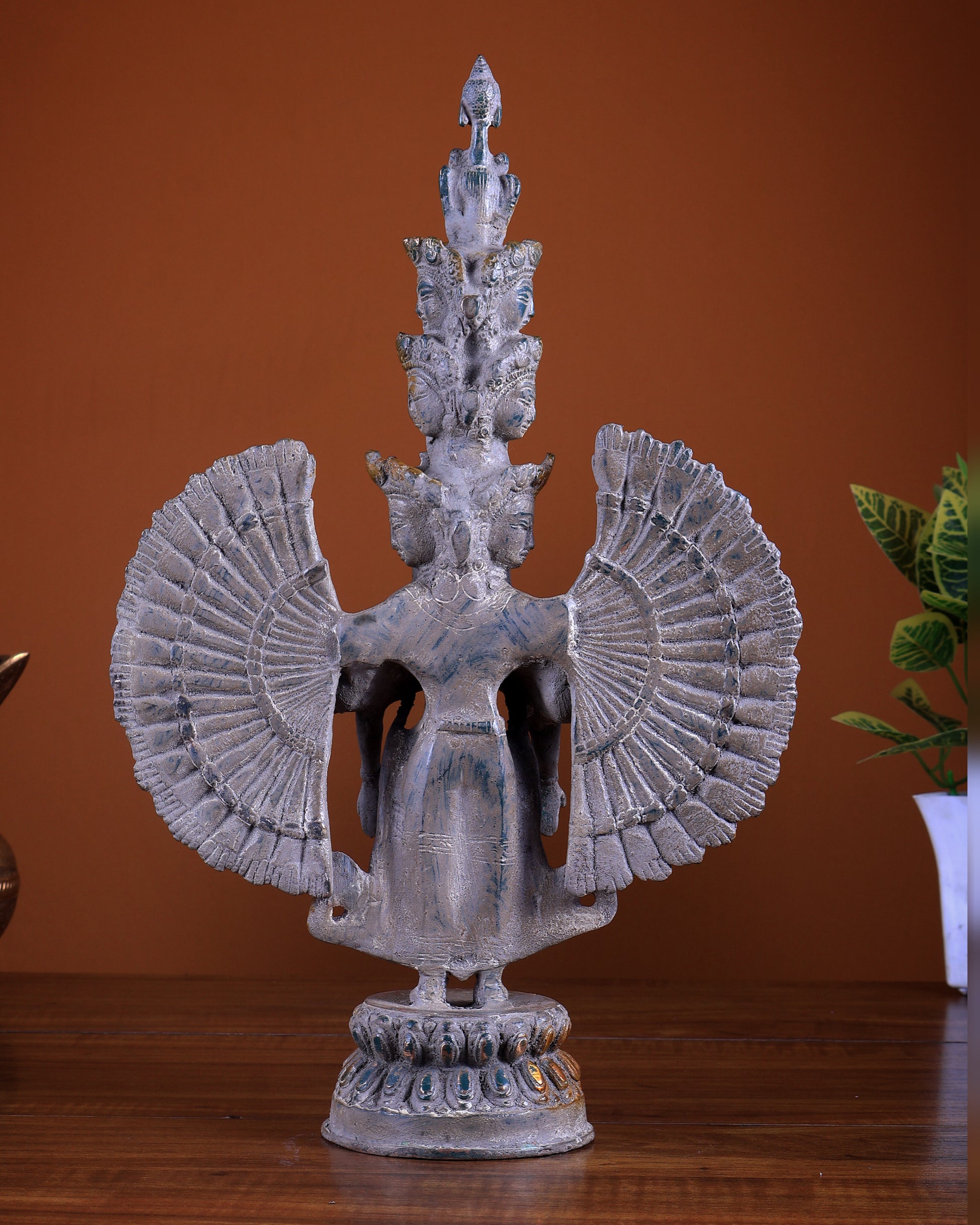 Avalokiteshvara Brass Statue with Eleven Heads & Multiple Arms 14 inch