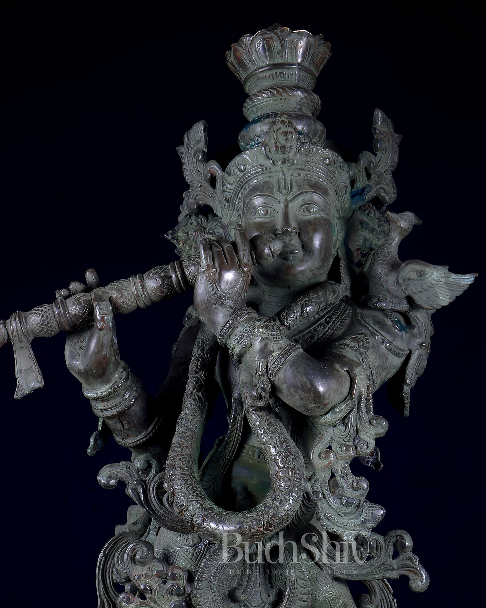 Lord Krishna symbolizes divine love, wisdom, joy, and harmony. A bronze Krishna statue is believed to radiate stability, longevity, and positive energy, making it especially suitable for long-term temple or heritage installations.