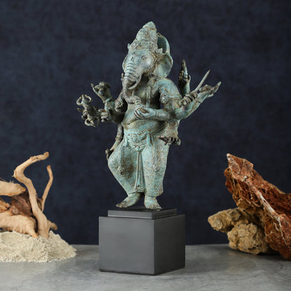Balinese Bronze Standing Ganesha Sculpture – 15" Height, Lost Wax Casting