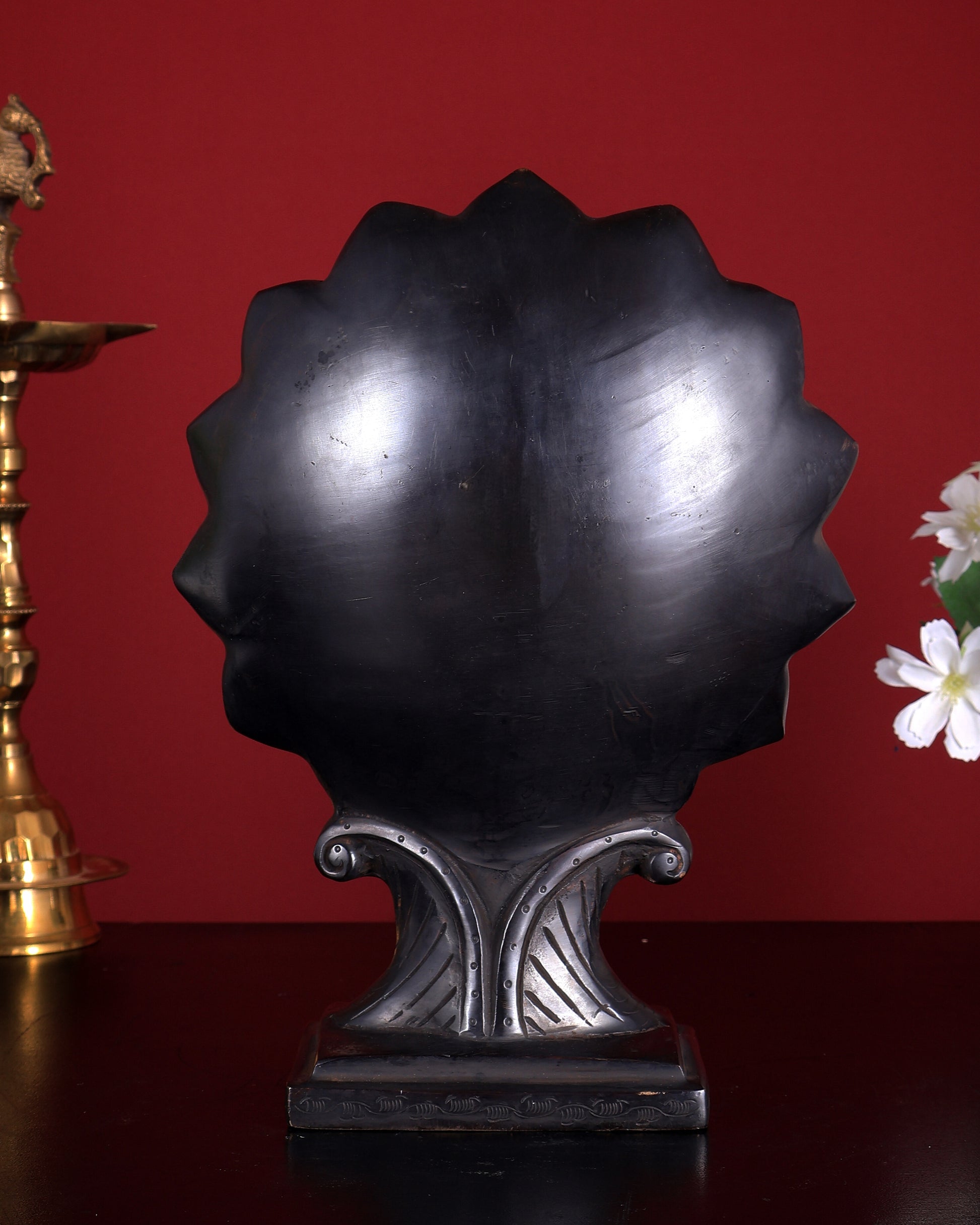 Handcrafted Brass Buddha Face Table Decor Showpiece. Made from brass with a black finish, this sculpture measures 9.5 inches (24.13 cm) in height, 7 inches (17.78 cm) in width, and 3 inches (7.62 cm) in depth, weighing 2.25kg Ideal for meditation spaces, luxury interiors, office décor, or spiritual gifting, this Buddha face radiates calm, mindfulness, and timeless artistry.