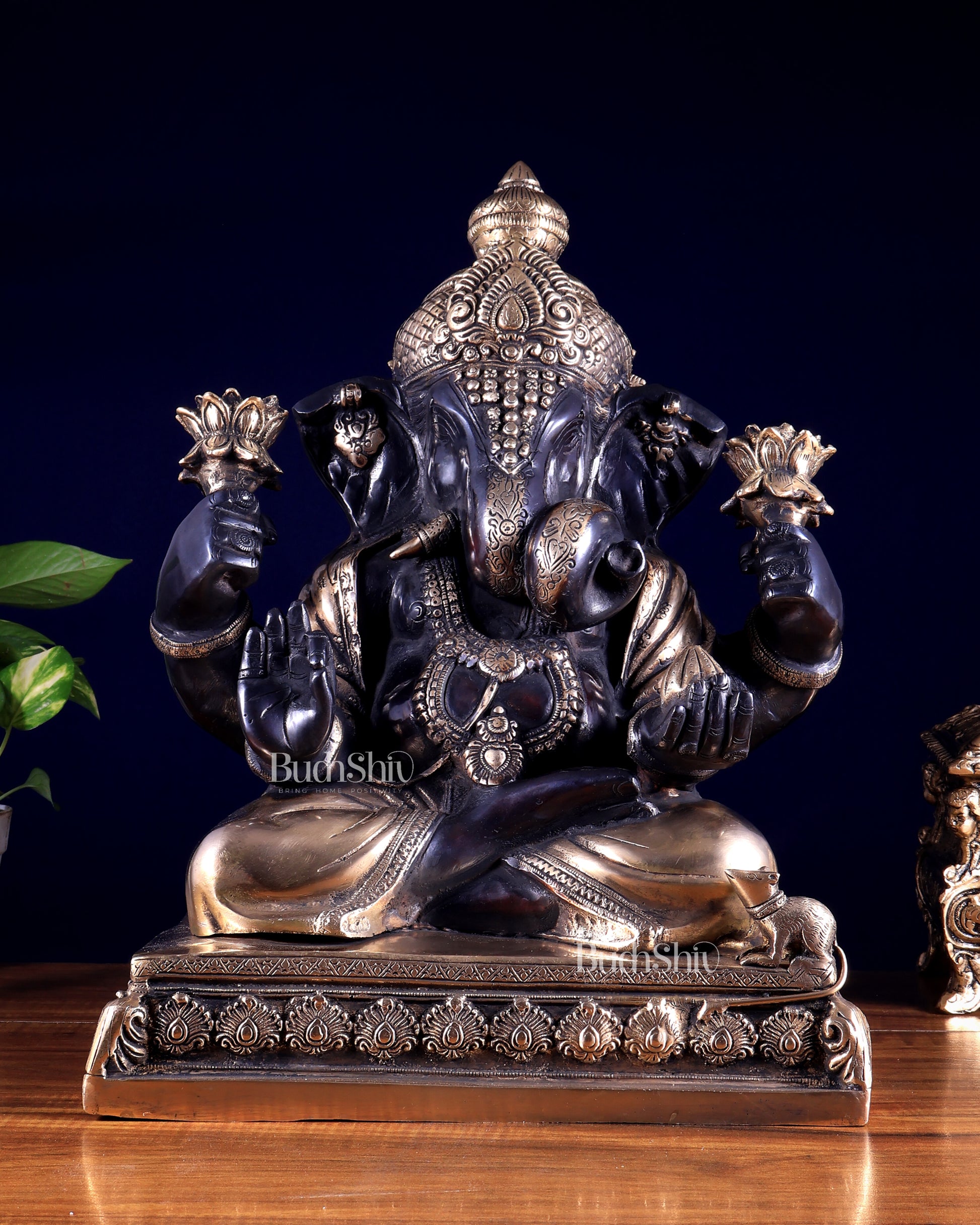Brass Dagduseth Ganapati Statue – Black Finish 13.5 inch