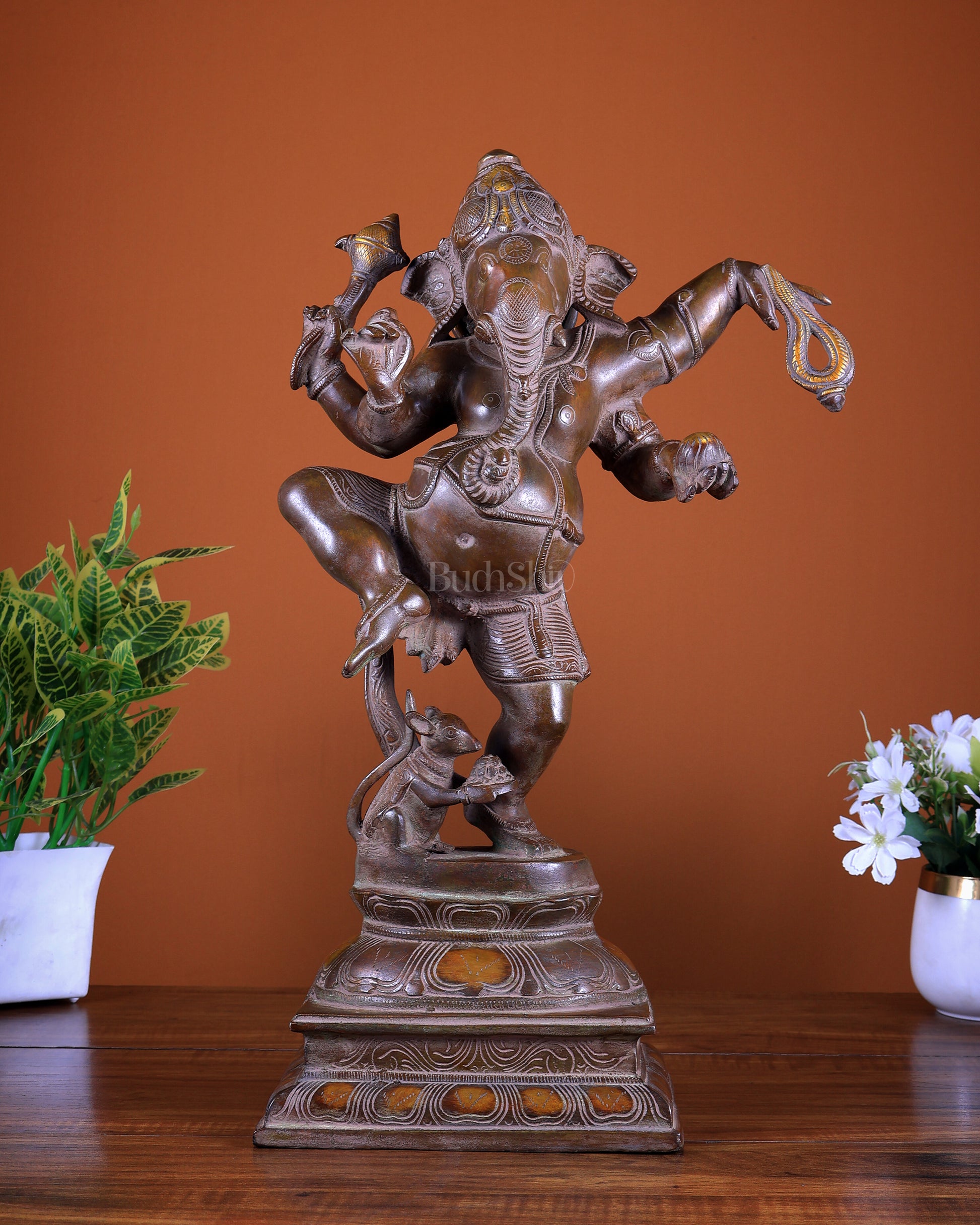 Brass Dancing Ganesha Statue Handcrafted Idol 18 inch