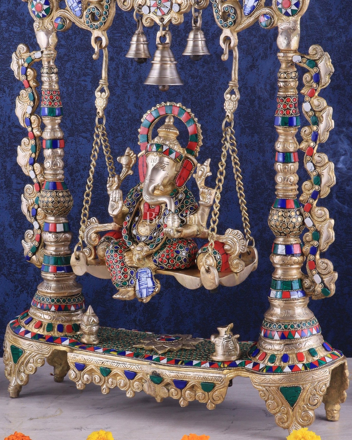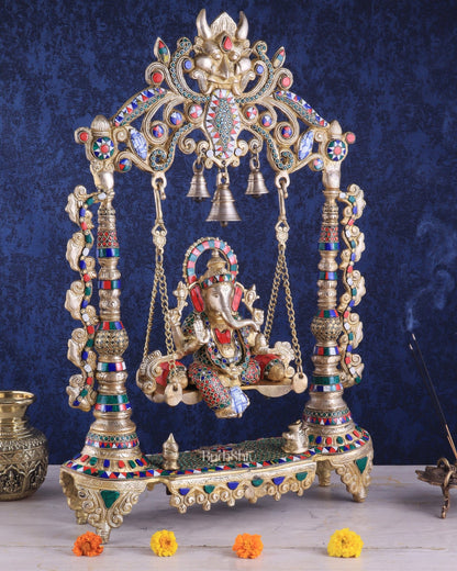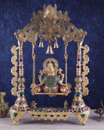 Brass Ganesha idol on large Swing jhoola - 26 inch large